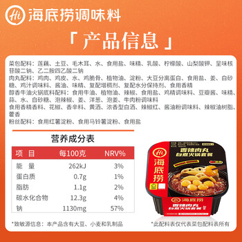 海底捞自热火锅 方便速食出游野餐便携无需热水 香辣肉丸272g