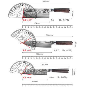 切片刀*1、主厨刀*1、三德刀*1、水果刀*1、刀座*1