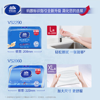 维达(Vinda) 抽纸 200抽*10包擦手纸 XL码加大 酒店厨房餐厅卫生间可用纸巾222mm*226mm 整箱销售VS2060-A