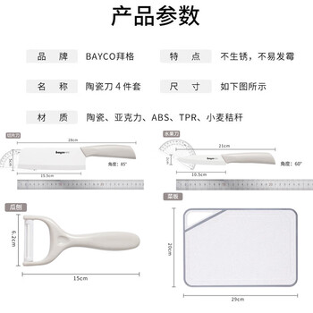 拜格(bayco)陶瓷刀具四件套宝宝辅食工具菜刀菜板水果刀瓜刨套装全套TZ3477