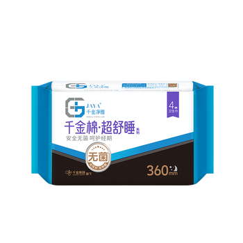 千金净雅超熟睡纯棉透气超长夜用卫生巾360mm*4片*1包京东自营姨妈巾消毒