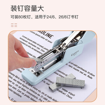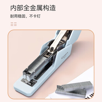 齐心(COMIX)省力订书机/订书器 莫兰迪色 20页 适用24/6、26/6钉 办公学习用品 冰川蓝B3114