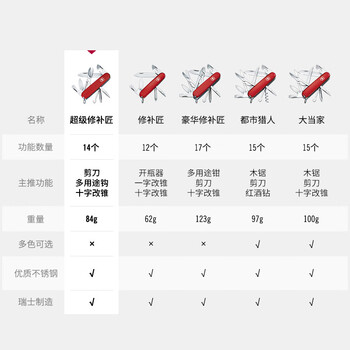 维氏瑞士军刀超级修补匠91mm户外刀具折叠刀防身小刀1.4703红