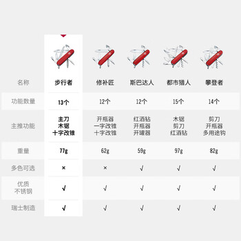 维氏瑞士军刀步行者91mm户外刀具折叠刀防身小刀1.4613红
