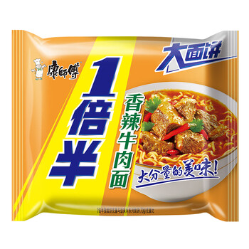 康师傅 方便面 一倍半香辣牛肉五连包128g*5 泡面袋装速食 大面饼