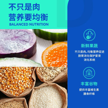 鲜鸡肉、三文鱼、燕麦、全脂羊乳粉、蛋黄粉、螺旋藻、蔓越莓粉、丝兰粉