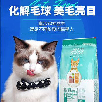 迪尤克(DIYOUKE)全价猫粮 幼猫成猫通用猫干粮 低盐鲜肉美毛 鱼肉味猫粮10kg