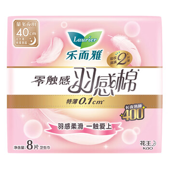 乐而雅花王零触感羽感棉超薄护翼型夜用卫生巾40cm8片姨妈巾京东自营