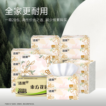 洁柔抽纸 繁花系列3层100抽*20包 可湿水面巾纸 柔韧卫生纸 整箱纸巾