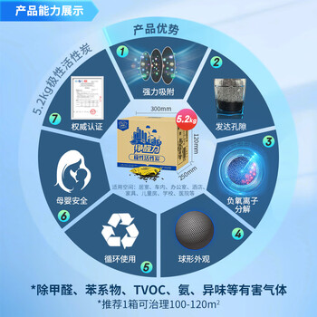 绿驰 5.2kg光触媒活性炭新房车装修去除甲醛清除剂吸异味苯tvoc竹碳包