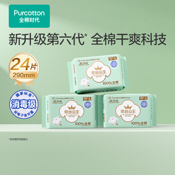 全棉时代【卢昱晓推荐】奈丝公主消毒级超净吸日夜用卫生巾3包(290*24p)