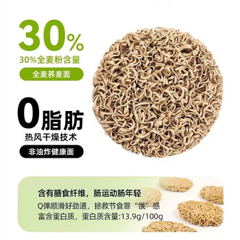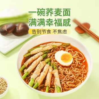 五谷道場全麦荞麦面方便面 低脂代餐 粗粮面饼60g*12袋 泡面速食
