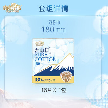淘淘氧棉天山白消毒级卫生巾纯棉透气迷你巾180mm*16片无香型