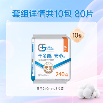 千金净雅安心纯棉透气日用组合卫生巾240mm*8片*10包80片京东自营消毒级