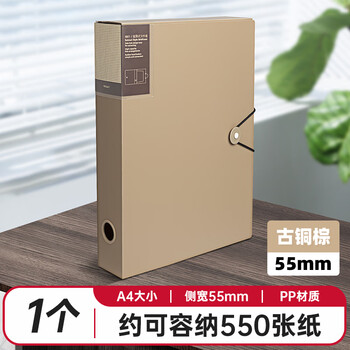 天色 A4档案盒 55mm加厚文件盒资料盒 文件夹资料册财务凭证收纳盒 办公用品 TS-11002 古铜棕