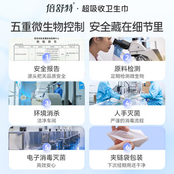 倍舒特超吸收 棉柔瞬吸抑菌安睡夜用加长卫生巾420mm18片京东自营姨妈巾