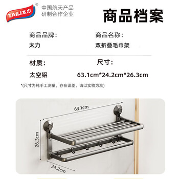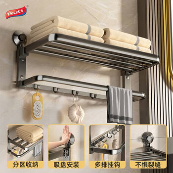 太力免打孔毛巾架吸盘卫生间置物架浴室置物架壁挂折叠毛巾挂架浴巾架