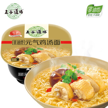 五谷道场 非油炸方便面 元气鸡汤面99g*6碗整箱装泡面*1