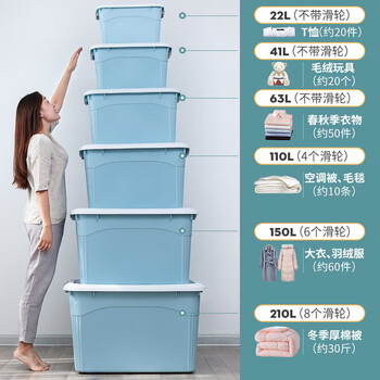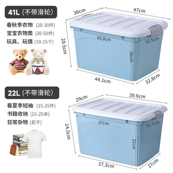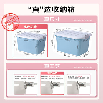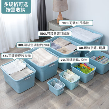 百草园塑料衣物收纳箱22L 蓝色 3个装 不带轮