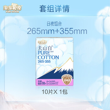 淘淘氧棉天山白消毒级卫生巾纯棉丝薄组合(265mm*8片+355mm*2片)无香型卫生巾