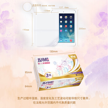 五月花(May Flower)抽纸 3层120抽*20包S码 柔厚亲肤用纸 整箱装