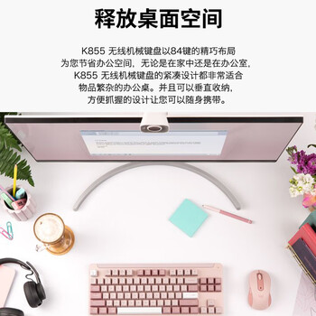 罗技(Logitech)K855无线机械键盘 优选系列 无线蓝牙键盘 游戏办公键盘 84键 粉色 TTC红轴 带Logit Bolt接收器