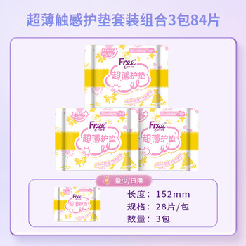 飞(Free)超薄触感 卫生护垫 日用 迷你巾 152mm*28片*3包