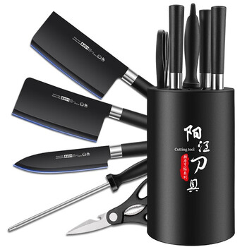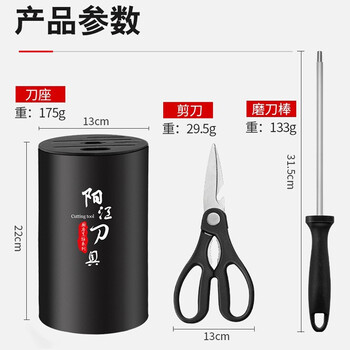 菜刀*1,砍刀*1,厨师刀*1,厨房剪*1,磨刀棒*1,刀座*1