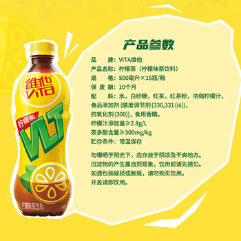 维他奶维他柠檬味茶饮料500ml*15瓶 饮料整箱装 开学季 分享装