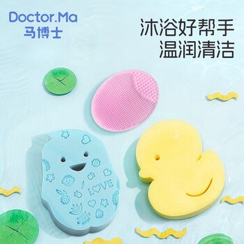 马博士婴儿洗澡海绵洗头刷宝宝洗澡神器儿童搓澡巾 企鹅+小鸭+洗头刷