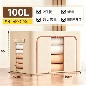 佳帮手布艺收纳箱 衣服棉被整理箱衣物储物箱百纳箱 米色 100L2只装