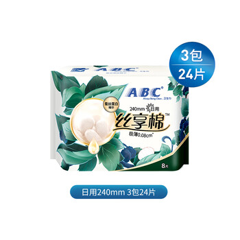 ABC丝享棉天然蚕丝蛋白精华日用卫生巾套装京东自营240mm*24片