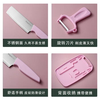 拜格(BAYCO)刀具套装四件 菜刀菜板辅食工具切片刀水果刀瓜刨砧板米色XY90037