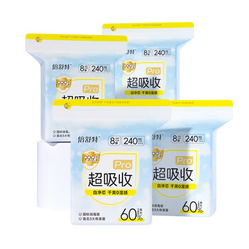倍舒特新国标认证超吸收棉柔卫生巾日用组合240mm32片 姨妈巾京东自营