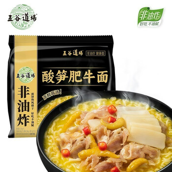 五谷道場非油炸方便面 酸笋肥牛面四连包129gx4袋装 袋面 早餐泡面 免煮