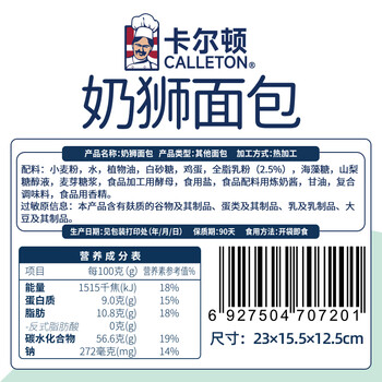 卡尔顿(Calleton)奶狮手撕面包410g营养早餐点心代餐整箱下午茶休闲零食小吃