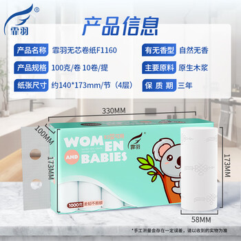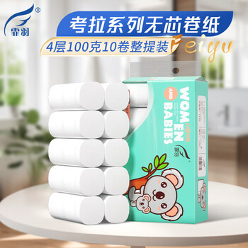 霏羽无芯卷纸4层100克*10卷家用加厚原木浆手纸巾厕纸卫生纸F1160-D