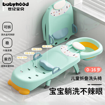 世纪宝贝(babyhood)儿童洗头躺椅 折叠宝宝洗澡神器可坐躺家用洗发床PVC软垫 清新绿
