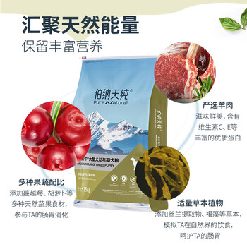 伯纳天纯 (Pure&Natural)狗粮 中/大型犬全价幼犬宠物主粮15kg 羊肉蔓越莓味拉布拉多萨摩耶*1