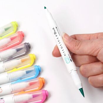 斑马牌(ZEBRA)双头荧光笔 彩虹色手账笔 学生重点划线笔标记笔 Brush柔和色系列 WFT8 柔和夏绿