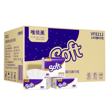 唯依美小方抽纸3层100抽*96包方巾纸抽取式面巾纸酒店餐巾纸整箱VF8212