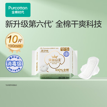 全棉时代奈丝公主消毒级超净吸纯棉超薄透气护翼迷你巾姨妈巾190MM10片/包