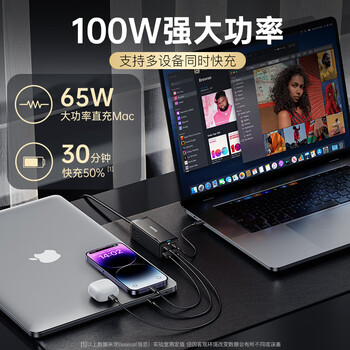 倍思 100W氮化镓立式插排插座/桌面智能充电站/多功能充电器/拖线板/魔方轨道插线板