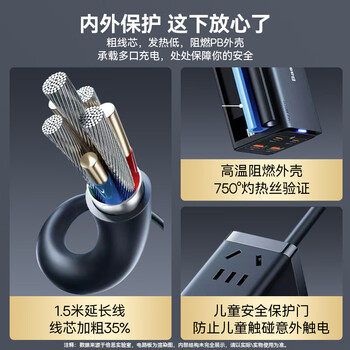 氮化镓桌面插线板 2AC+2U+2C 100W 黑