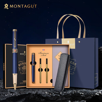 梦特娇(MONTAGUT)【马年礼物】签字笔男女商务书写办公皮质笔袋高档礼盒套装君肯系列蓝色0.5mm