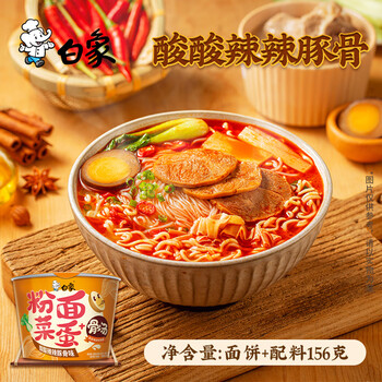 白象方便面 粉面菜蛋酸辣豚骨味泡面粉丝卤蛋整箱156g*12桶