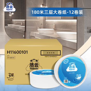 洁云商用大卷纸3层180米*12卷 整箱卫生纸 厕纸大盘纸商场酒店纸巾
