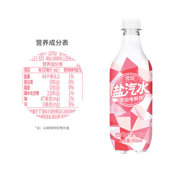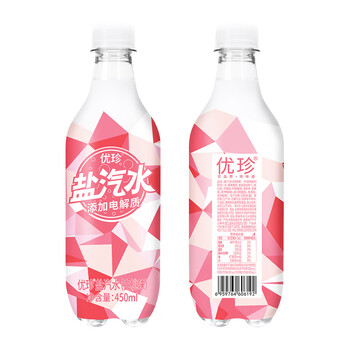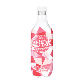 优珍盐汽水 白桃味碳酸饮料 含气带盐清爽解渴 450ml*24瓶 塑膜量版