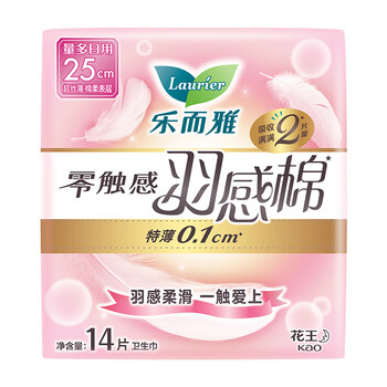乐而雅花王零触感羽感棉超丝薄日用卫生巾25cm14片姨妈巾京东自营新国标