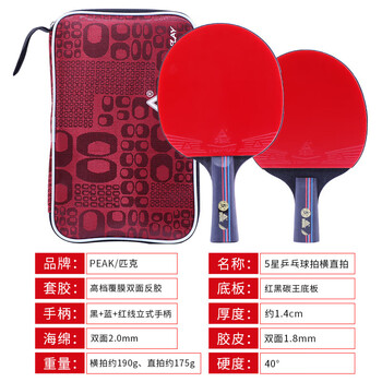 匹克PEAK五星级乒乓球拍横直比赛成品对拍套拍含拍包球10只 5星横直